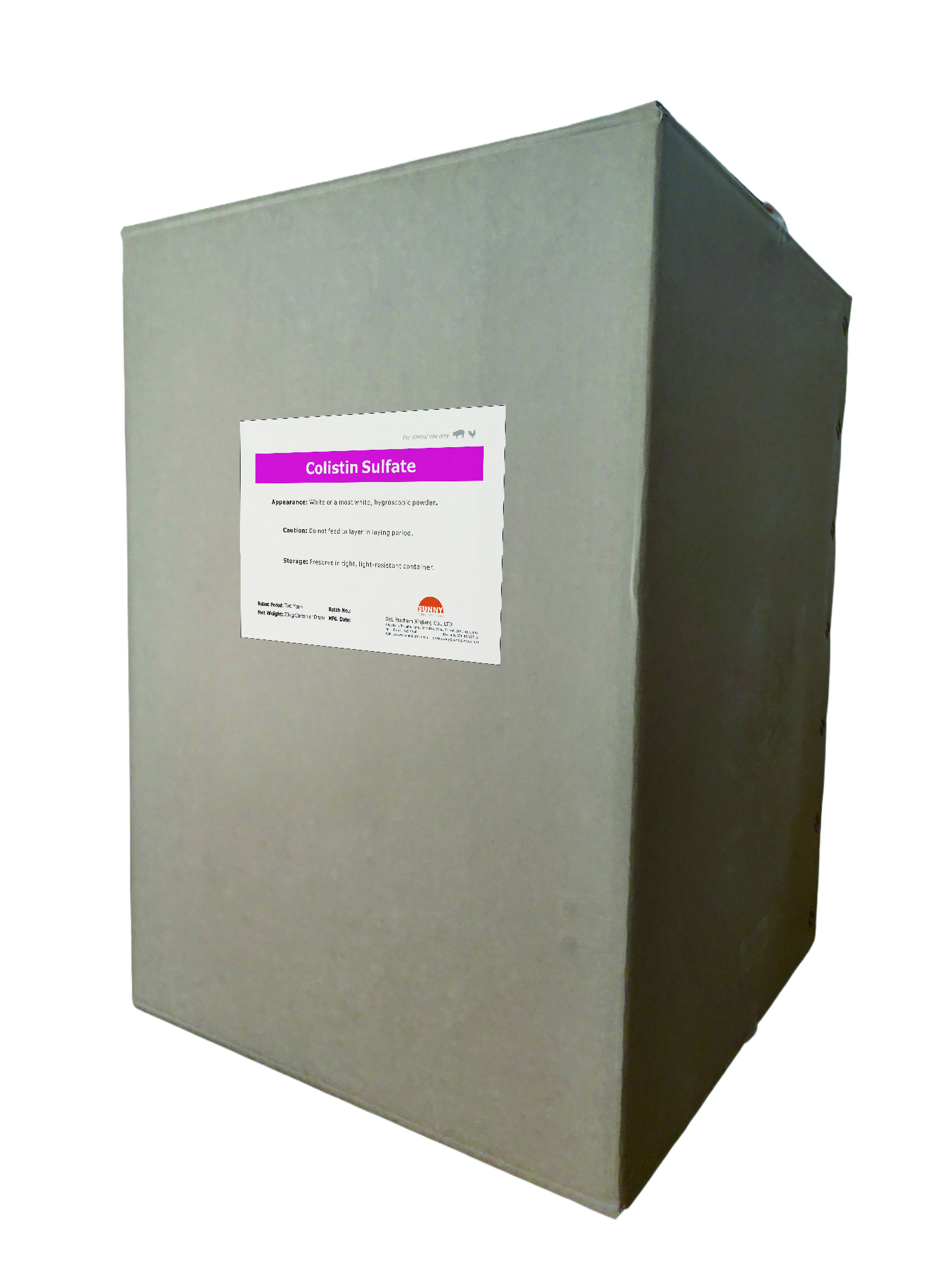 Colistin (Polymyxin E) is polymyxin antibiotic produced by culture of Bacillus polymyxa var colistinus. It is effective primarily against gram-negative microorganisms such as E-coli and Salmonella. Colistin is bactericidal and it causes disorganisation of the bacterial cell membrane with leakage of intracellular materials and inhibits bacterial oxidative metabolism. Gram-positive bacteria are naturally resistant to colistin. However, acquired resistance of gram-negative enteric bacteria to colistin is uncommon.